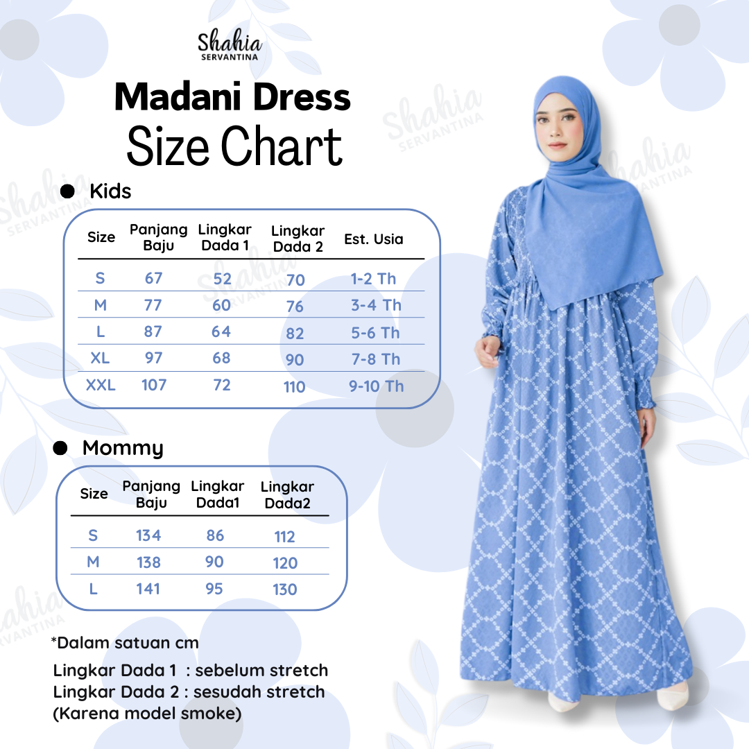 Madani tersedia dengan model Family set terdapat dress dewasa, dress anak, koko anak dan koko dewasa yang cocok digunakan untuk menyambut hari raya. Detail motif yang unik dari Madani Famet hanya tersedia di Shahia karena motif exclusive by Shahia. tersedia dalam 5 pilihan warna classy. Madani belum satu set keluarga, per item dijual terpisah. untuk dress terdapat smoke dan tidak busui friendly juga belum set dengan hijab. koko madani famset terdapat kancing aktif dibagian depan. Baik dress maupun kokonya dibuat dengan material dobby print yang flowy dan nyaman saat dipakai.😍