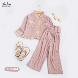 Material Elle Oneset baik atasan maupun bawahannya dari bahan Knit halus, nyaman. Bagian atasan Elle oneset diberi aksen ruffle dengan warna yang berbeda yang tentunya match dengan warna oneset dan untuk celana bagian pinggang full karet sehingga bisa menyesuaikan badan si kecil. dibagian atasannya juga terdapat pocket yang menambah look Elle oneset semakin lucu saat dipakai sikecil.