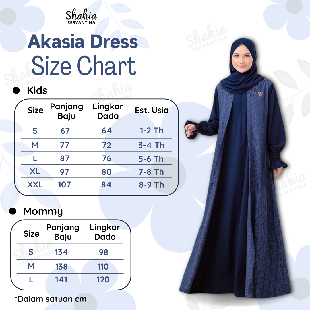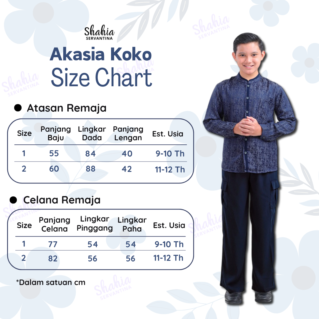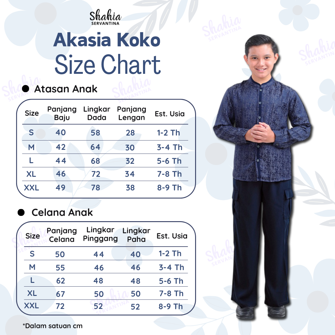 * Terdapat perbedaan 1-2cm karena proses pemotongan dan jahit