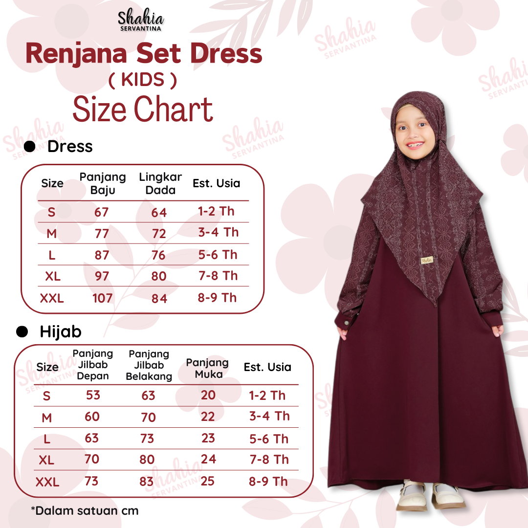 * Terdapat perbedaan 1-2cm karena proses pemotongan dan jahit