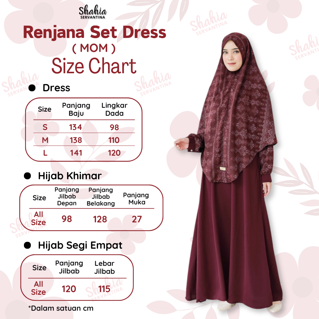 Renjana Set Dress couple Mom & kids sudah dilengkapi hijab baik size anak maupun mommny nya.