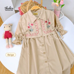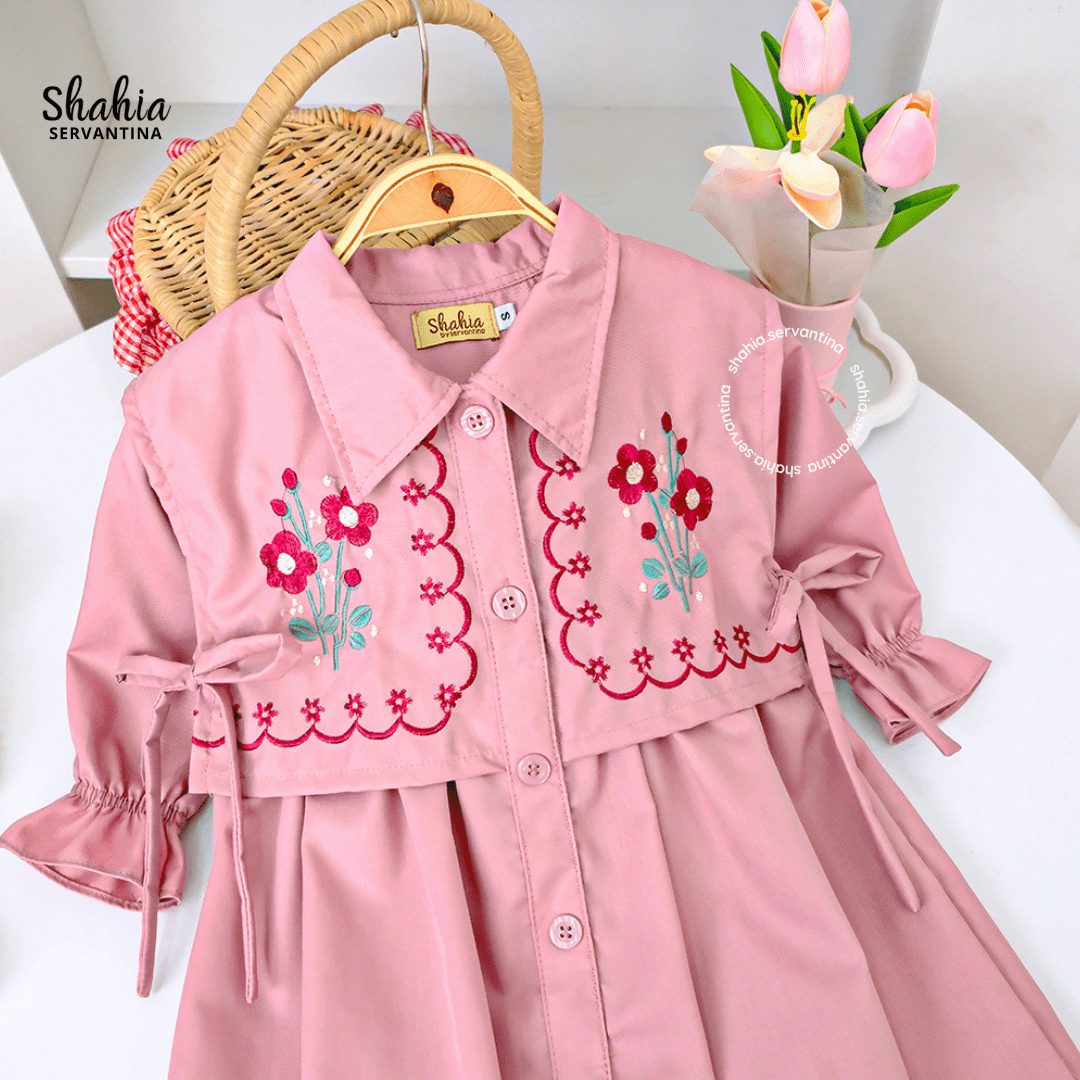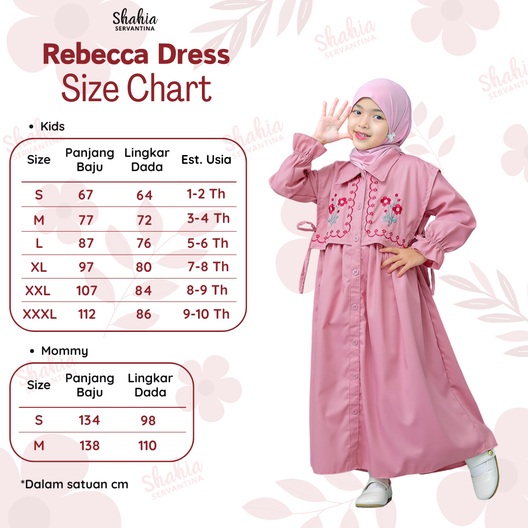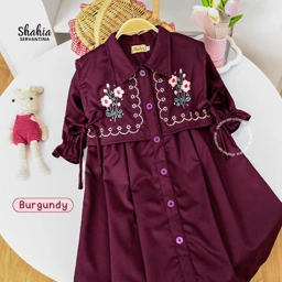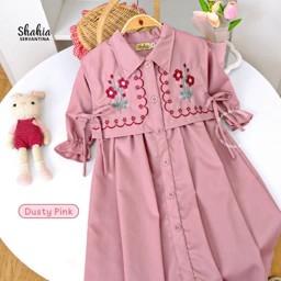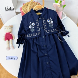 Rebecca Dress Gamis anak Perempuan terdiri dari 7 variasi warna , memiliki material Cotton bordir dress kekinian terdapat aksen rompi yang menyatu pada dress di bagian depan dress membuat look semakin stilysh. Memiliki detail bordir unik membuat kesan cute pada anak. Dress belum satu set dengan hijab. kerut di bagian perrgelangan tangan membuat dress lebih hidup.