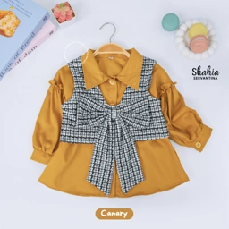 Aura Top 2 in 1 memiliki 5 variasi warna cantik dipadukan dengan outer yang cute. Menggunakan material Toyobo Vest mix Tweed yang sangat comfy. Outer bisa di lepas pasang untuk kemeja full kancing bagian depan dan pita menyatu dengan outer.