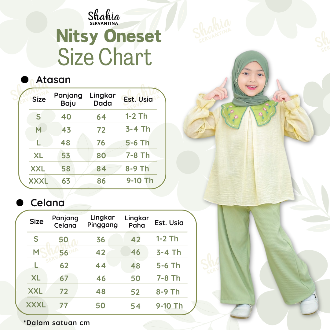 * Terdapat perbedaan 1-3cm karena proses pemotongan dan jahit