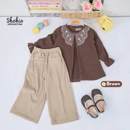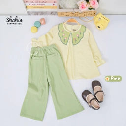 Alya Oneset terdiri dari 6 variasi warna Super Cute. menggunakan material linen mix flo knit yang nyaman, adem dan ringan. Memiliki aksen kerah bunga dan lipit bagian tengah atasan. Celana Pinggang full karet dan saku bagian depan.