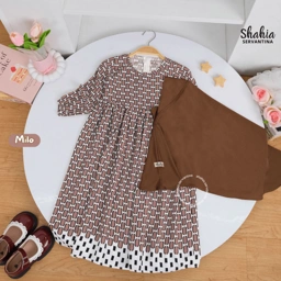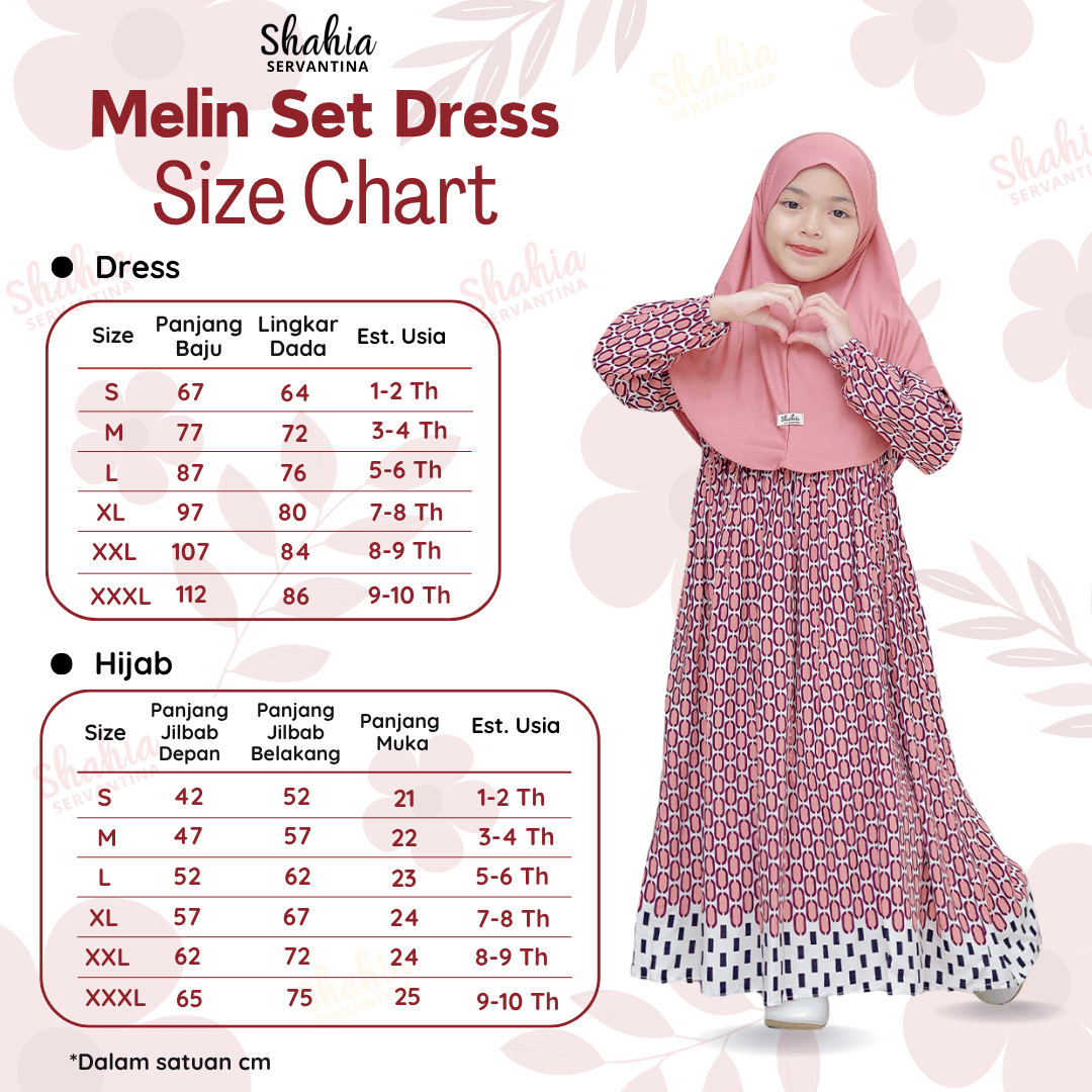 Melin Set Dress tersedia dalam 4 warna dengan model Anak, cocok dipakai untuk sekolah, TPQ ataupun acara casual lainnya. Untuk Dressnya motif oval membuat look semakin cute. Material dari RAYON Mix JERSEY yang adem, jatuh, nyaman. Terdapat full karet pada pergelangan tangan. Dress resleting belakang.